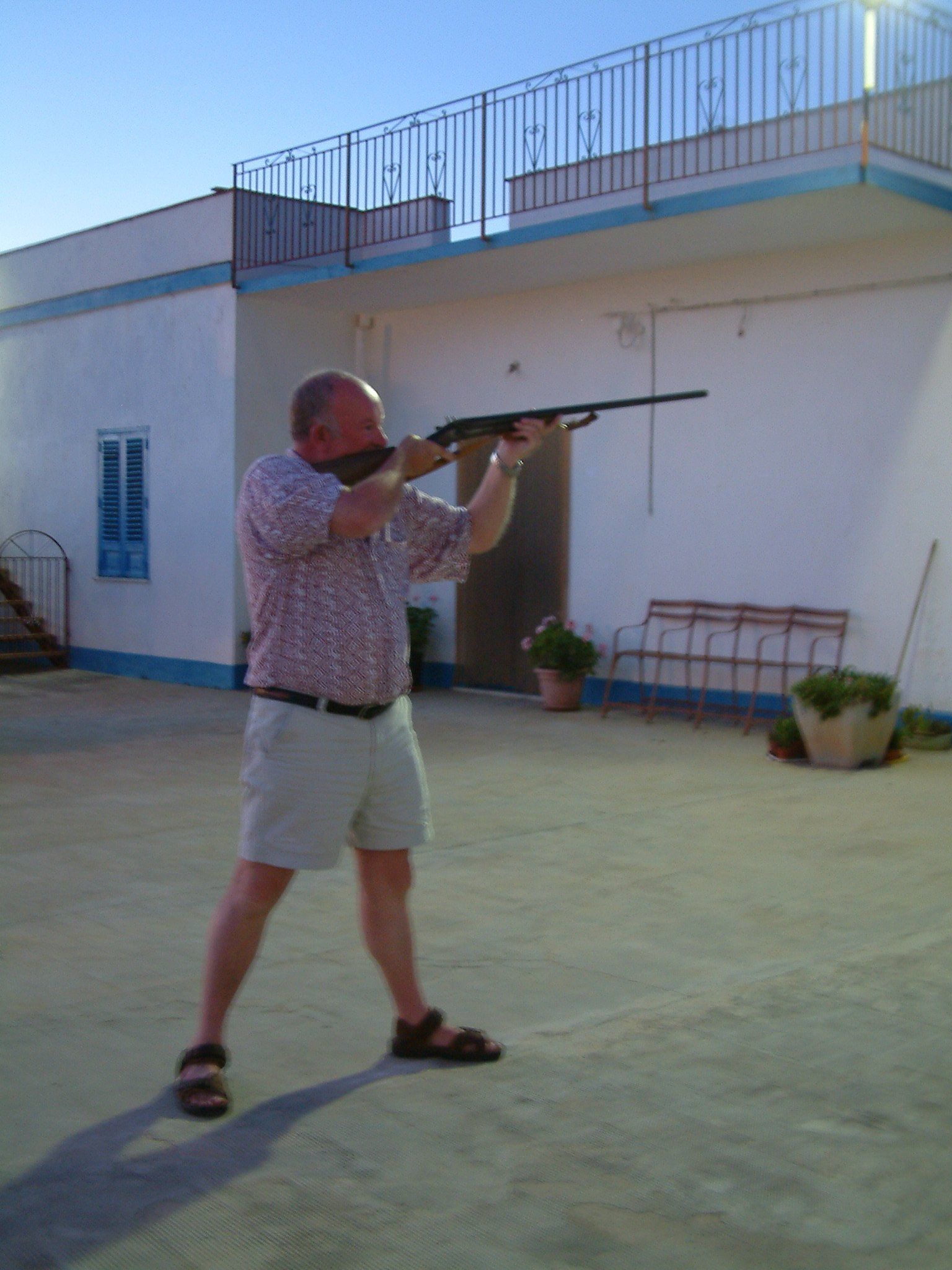 The Cannitello has been visited by Peter and his wife on several occasions, including his children. It has also been visited by his friends Mick and his wife. Mick is seen here trying my dad's rifle! His wife is seen here on the roof finding out about sun-dried figs.